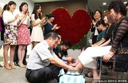 (VTC News)- Lễ rửa chân cho vợ được tổ chức hôm qua (21/5) ở thủ đô Seoul (Hàn Quốc) thu hút nhiều cặp vợ chồng già, trẻ tham gia. Mục đích của lễ hội là để tạo quan hệ tốt đẹp hơn giữa hai vợ chồng.