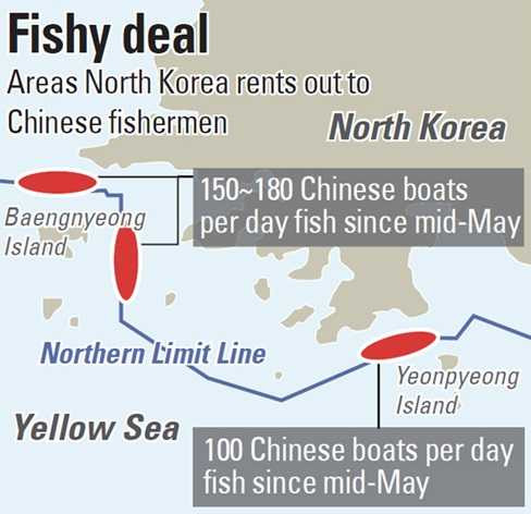 Chỉ trong tháng 5, Hàn Quốc đã bắt được 7 tàu cá của Trung Quốc đánh bắt trái phép trong vùng biển gần đảo Yeonpyeong ở phía Nam NLL thuộc lãnh hải của Hàn Quốc.