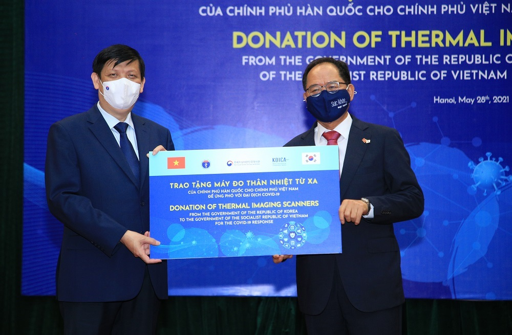 Sáng 28/5, Chính phủ Hàn Quốc trao tặng 40 máy đo thân nhiệt từ xa cho Chính phủ Việt Nam để ứng phó với đại dịch COVID-19.