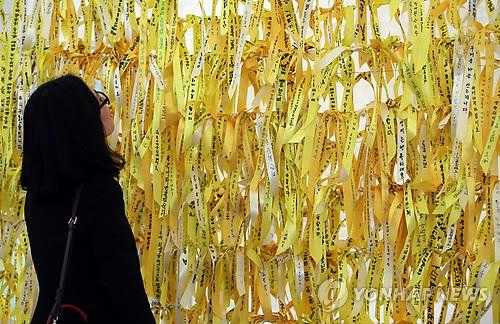 | Ruy băng vàng thể hiện niềm hy vọng những hành khách còn mất tích trong thảm họa chìm phà 2 tuần trước sẽ trở về an toàn |