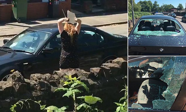Phát hiện bạn trai lừa dối mình, cô gái giận dữ cầm đá ném vỡ toàn bộ kính chiếc BMW hạng sang của gã bạn trai tại thành phố Cardiff, xứ Wales, Vương quốc Anh.