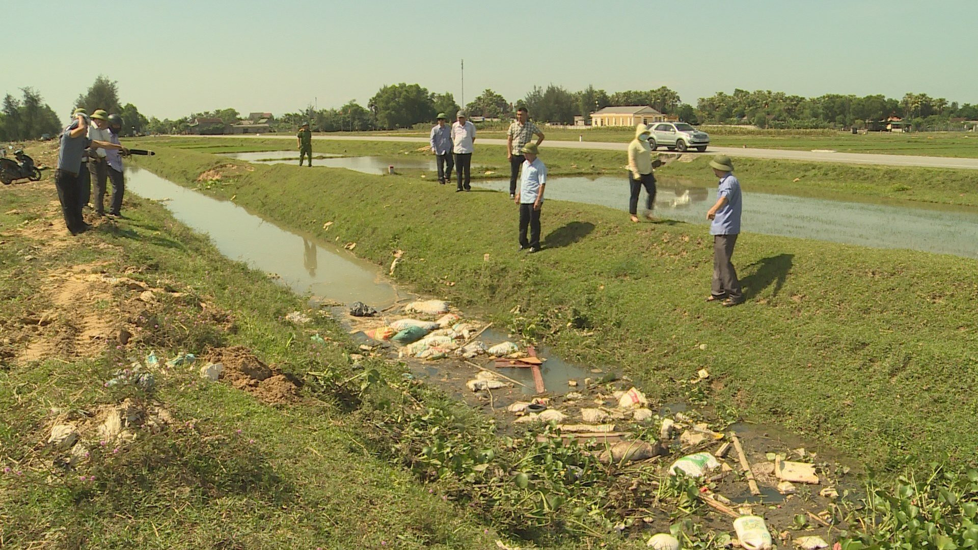 Ngày 24/5, cơ quan chức năng kiểm tra hàng chục con lợn chết trôi trên kênh dẫn nước N9.