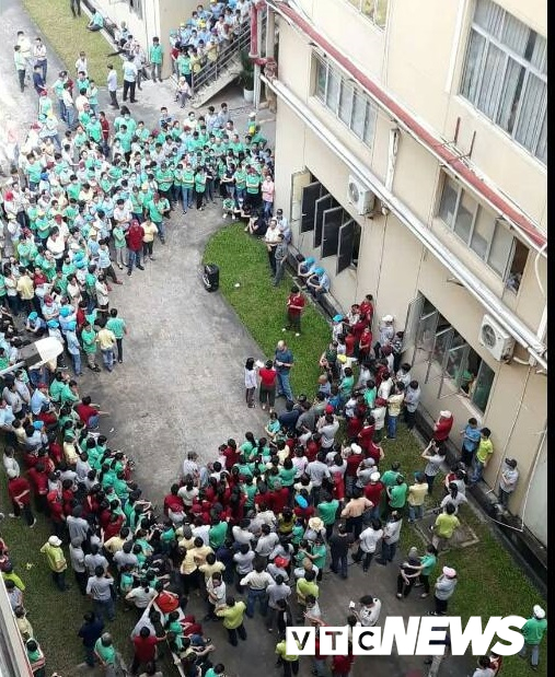 Các công nhân đồng loạt ngưng việc để phản đối nhà ăn.