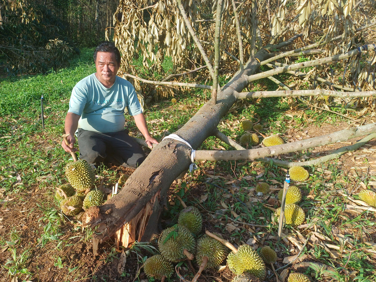 Ông Nguyễn Ngọc Hiếu cho biết vườn sầu riêng của gia đình bị thiệt hại nặng khi khoảng 30 cây bị gãy đổ, nhiều cây bị nghiêng gốc, gãy cành nhánh. Chỉ tính riêng vụ này, ông Hiếu ước tính thiệt hại hơn 300 triệu đồng.