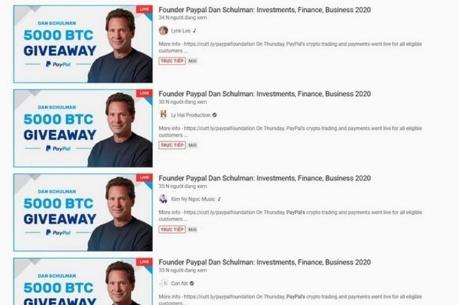 Theo ghi nhận của ICTnews, chiều qua (20/11) hàng chục kênh YouTube của Việt Nam với trên 1 triệu subs đã bị tin tặc tấn công, chiếm quyền kiểm soát kênh và đăng tải cùng một nội dung livestream lừa đảo nhận Bitcoin. Mục đích của tin tặc là lừa người dùng ấn vào đường link chứa virus để chiếm quyền điều khiển máy tính hoặc chiếm đoạt thẻ tín dụng, tài khoản ngân hàng và thông tin cá nhân khác.
