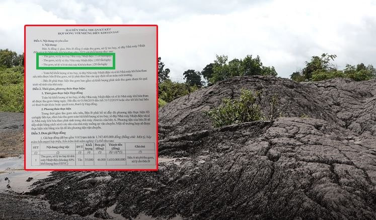 Ông Tiệp nói thêm, trong hợp đồng nêu rõ, việc Công ty Đức Thành thu gom, xử lý tro bay ở nhà máy nhiệt điện hơn 120 tấn/ngày và hơn 102 tấn/ngày xỉ đáy; thu gom, xử lý xỉ lò ở nhà máy khí hóa than hơn 20 tấn/ngày.