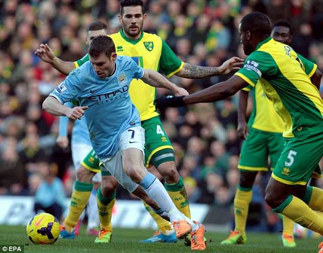 Trong 45 phút đầu tiên, cả Jovetic và Milner dù đã hoạt động rất tích cực nhưng hầu như không có bất cứ liên kết chặt chẽ nào với Negredo và Yaya Toure. Chính vì thế, dù tạo được thế trận lấn ép đội chủ nhà, tạo ra được 5 cơ hội nguy hiểm từ những cú sút xa nhưng Man City vẫn không thể tiếp cận được khung thành của thủ môn Ruddy.