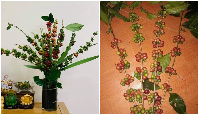 Bên cạnh các loại hoa truyền thống, gần đây, nhiều bà nội trợ lại có xu hướng săn lùng, chọn mua cành cà phê tươi về làm cảnh, trang trí không gian trong nhà.