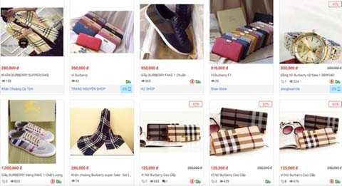 | Hàng loạt sản phẩm giả nhãn hiệu Burberry bán trên trang Sendo - Ảnh chụp màn hình |