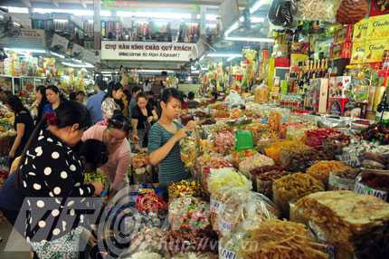 Theo ghi nhận của chúng tôi, tại chợ Bến Thành, Q.1, chợ An Đông, Q.5, chợ Bình Tây (quận 6), chợ Bà Chiểu, Q.Bình Thạnh, chợ Phạm Văn Hai và chợ Hạnh Thông Tây, Q.Gò Vấp…lượng hàng bán ra chủ yếu là quần áo. Còn các mặt hàng banh kẹo, mứt, hoa quả, thực phẩm…người bán thì đông nhưng người mua lại thưa thớt.