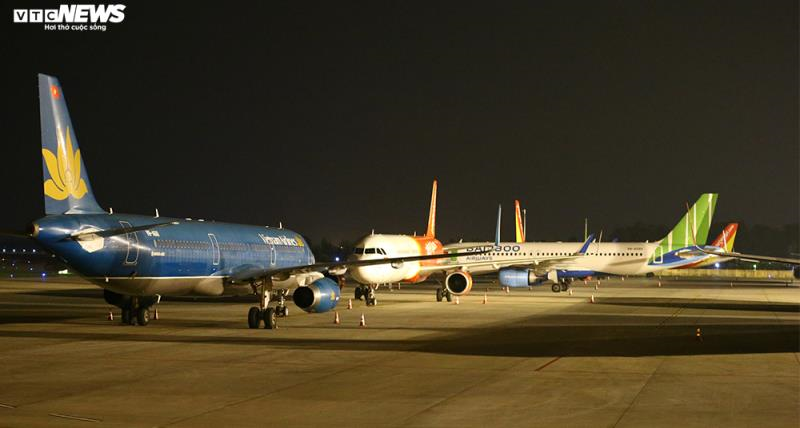 Quyết định dừng toàn bộ các chuyến bay quốc tế khiến nhiều máy bay buộc phải nằm chờ dài hạn ở sân đỗ Cảng hàng không Nội Bài (Hà Nội).