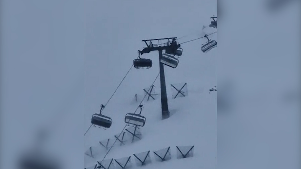 Gió mạnh khiến hàng loạt cabin cáp treo rung chuyển dữ dội tại khu nghỉ dưỡng trượt tuyết ở thung lũng Aosta, Italy.