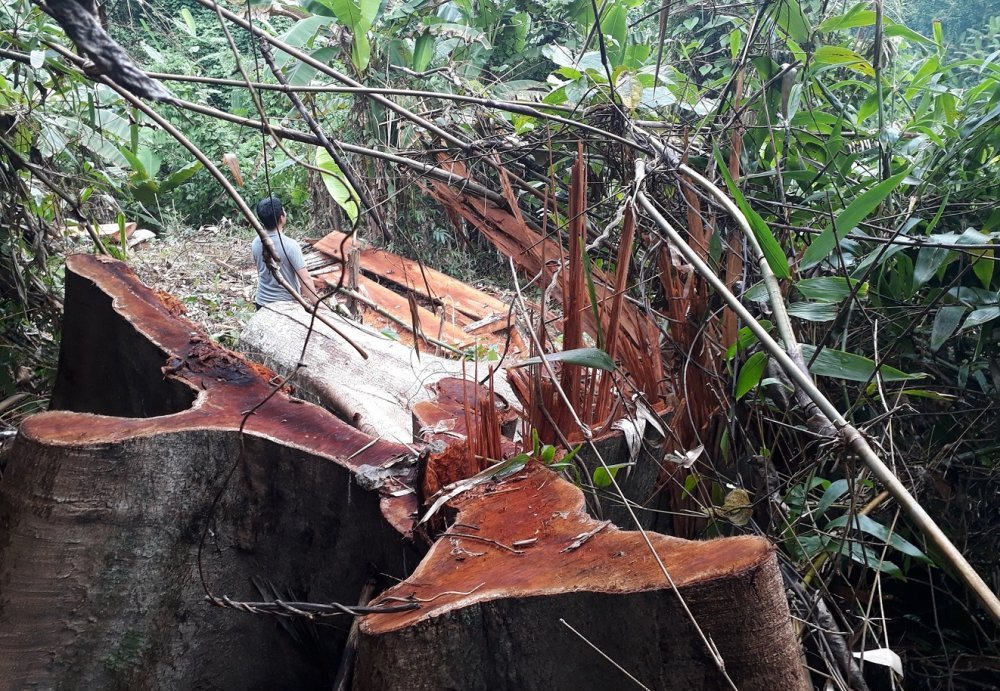 Cây gỗ cổ thụ trong rừng tự nhiên ở xã Trà Nú bị triệt hạ.