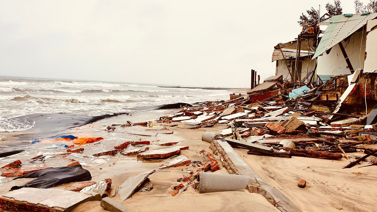 Theo UBND TP Hội An, qua cơn bão số 4 (Noru) và kết hợp với hoàn lưu bão cùng triều cường, không khí lạnh, gió mùa Đông Bắc trong thời gian qua đã làm cho bờ biển Cẩm An bị sạt lở toàn tuyến.