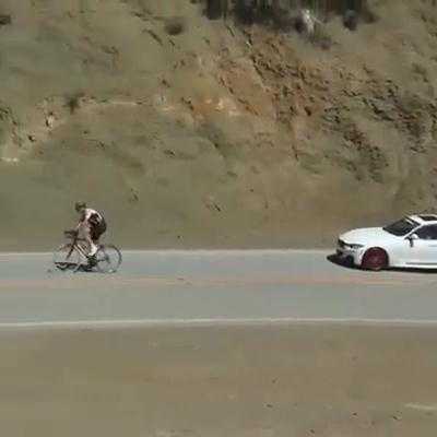 (VTC News) - Rất nhiều ôtô và môtô phải kiên nhẫn đi sau lưng chiếc xe đạp đang chậm rãi leo lên dốc.