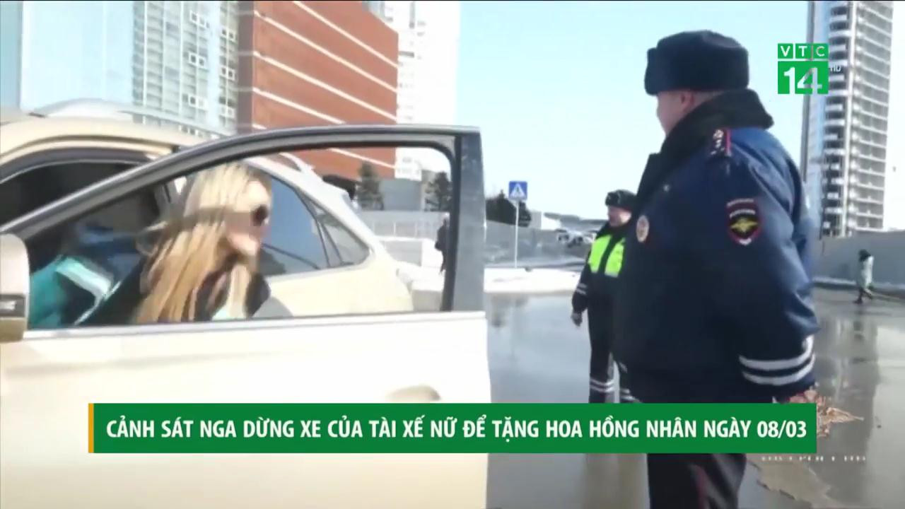 CSGT tại nhiều thành phố ở Nga lan tỏa niềm vui ngày 8/3 bằng cách ra tín hiệu dừng xe với các nữ tài xế rồi bất ngờ tặng họ một bông hồng giấu sau lưng.