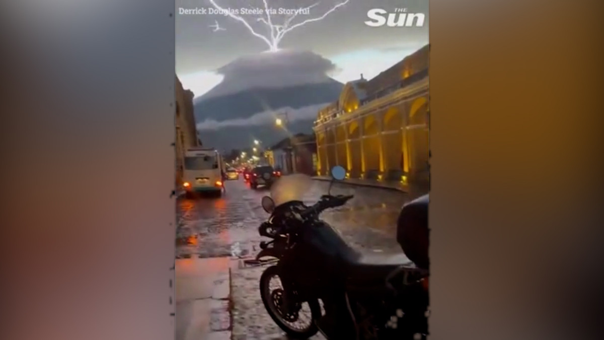Đoạn video ghi lại khoảnh khắc đáng kinh ngạc khi những tia sét xuất hiện trên đỉnh núi lửa ở miền Nam Guatemala.