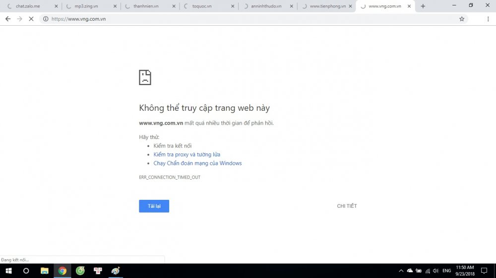 Như báo điện tử VTC News đã đưa tin, vào khoảng 10h30 trưa nay, hàng loạt trang báo điện tử, tin tức, giải trí như Zing.vn, Zing mp3, Zalo, Vinagame, Báo mới, Thanhnien, PLO,... đều không thể truy cập được.