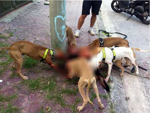 Đáng kể nhất là một bức ảnh được phát tán trên mạng cho thấy cảnh 6 con chó Pitbull quây vào xâu xé một con chó ta một cách man rợ khiến mọi người không khỏi bàng hoàng.