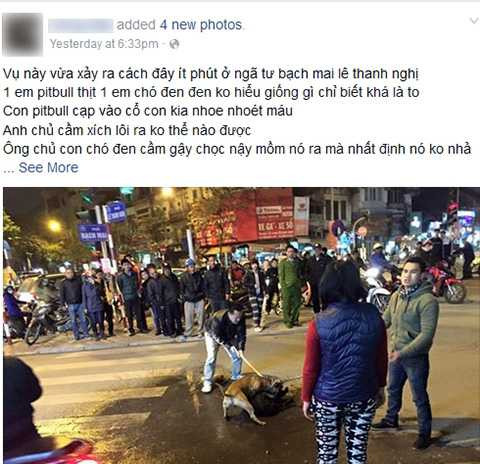 Một vụ khác xảy ra tại khu vực phố Lê Thanh Nghị. Một con chó Pit bull cũng cắn chết một con chó khác ngay trên đường.