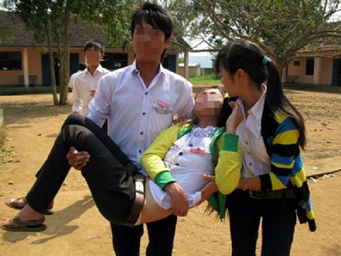 Một học sinh lớp 5 bỗng nhiên ngất trong lớp học. (Ảnh: Lao Động)