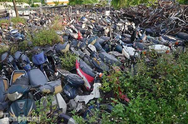 Những xe vi phạm, xe gây tai nạn đắt tiền như Honda SH, Liberty... đang nằm phơi mưa nắng, hoen gỉ tại bến đỗ xe Mỹ Đình I, Nam Từ Liêm, Hà Nội.