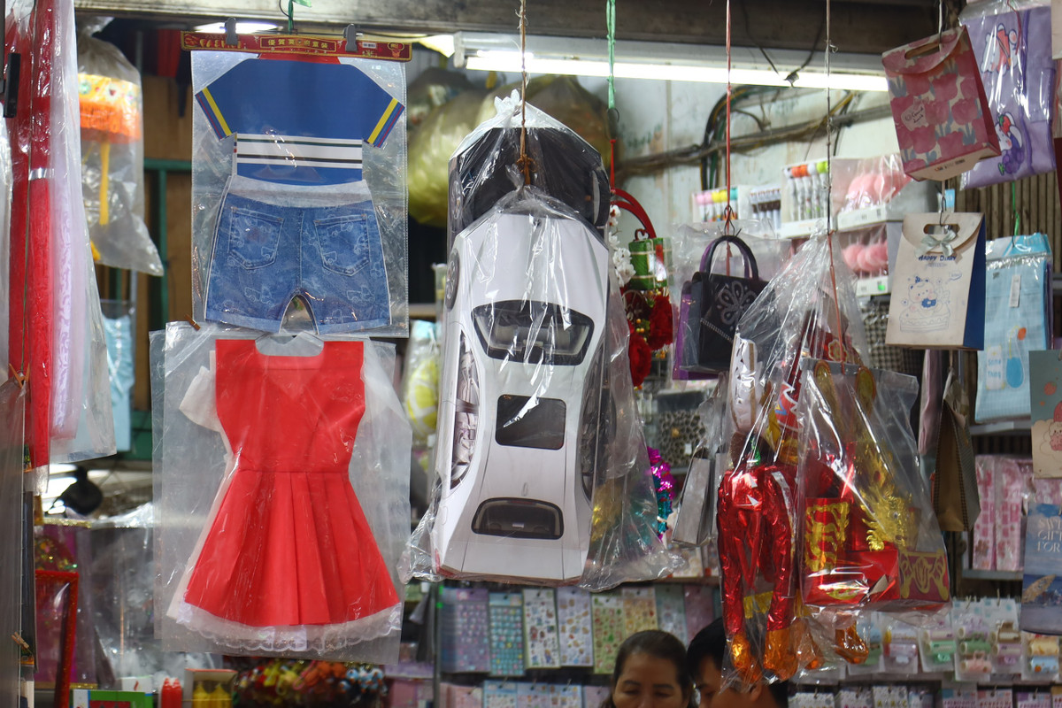 Vắng khách, người tiêu dùng ít mua những đồ vàng mã khủng khiến những món đồ đặc biệt như xe Mercedes, tivi Sony… bị treo ngược lên tường, trở thành hàng tồn.