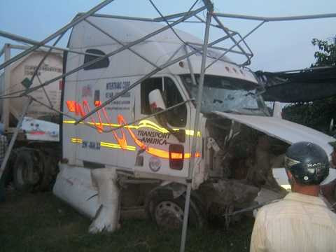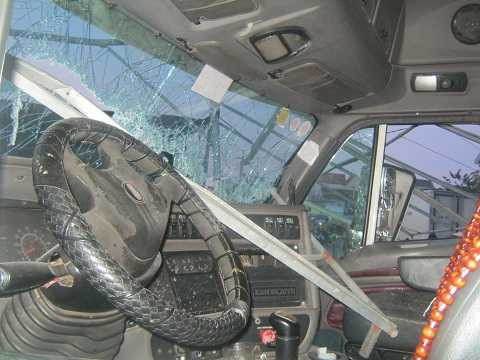 | Những thanh sắt xuyên kính chắn gió, đâm vào cabin. |