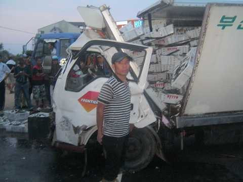 Cú đánh trái đã khiến xe của anh Hoàng tông vào xe đông lạnh của anh Hồng chở cá đang di chuyển chiều ngược lại. Sau đó, xe tiếp tục lao ra khỏi đường QL1A, tông vào hệ thống chiếu sáng của vườn cây cảnh bên đường, những thanh sắt đâm vỡ kính chắn gió, xuyên vào ca bin.