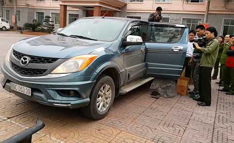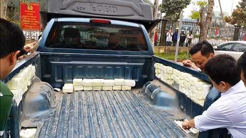 Sáng cùng ngày, công tác khám xe được triển khai, phát hiện rất nhiều bọc giấy trắng được ngụy trang ở các cánh xe, hai bên hông xe, gầm, ghế xe. Phía sau thùng xe có 2 chiếc loa cỡ lớn cũng được chất đầy hộp giấy màu trắng.