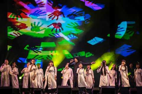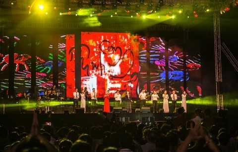 Tinh thần “Nối vòng tay lớn” thật sự thăng hoa khi các nghệ sĩ trên sân khấu và hàng ngàn khán giả cùng hòa trong âm nhạc và đồng thanh cất lời “biển xanh sông gấm nối tròn một vòng Việt Nam…”