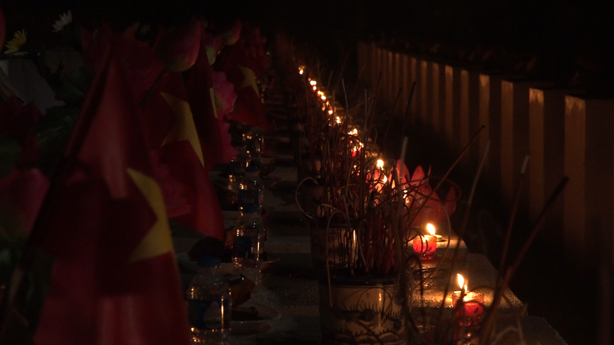Hơn 1800 phần mộ tại nghĩa trang Vị Xuyên, Hà Giang được người dân, tình nguyện viên thắp sáng bằng nến tại Đại lễ cầu siêu, tưởng niệm các anh hùng liệt sỹ.
