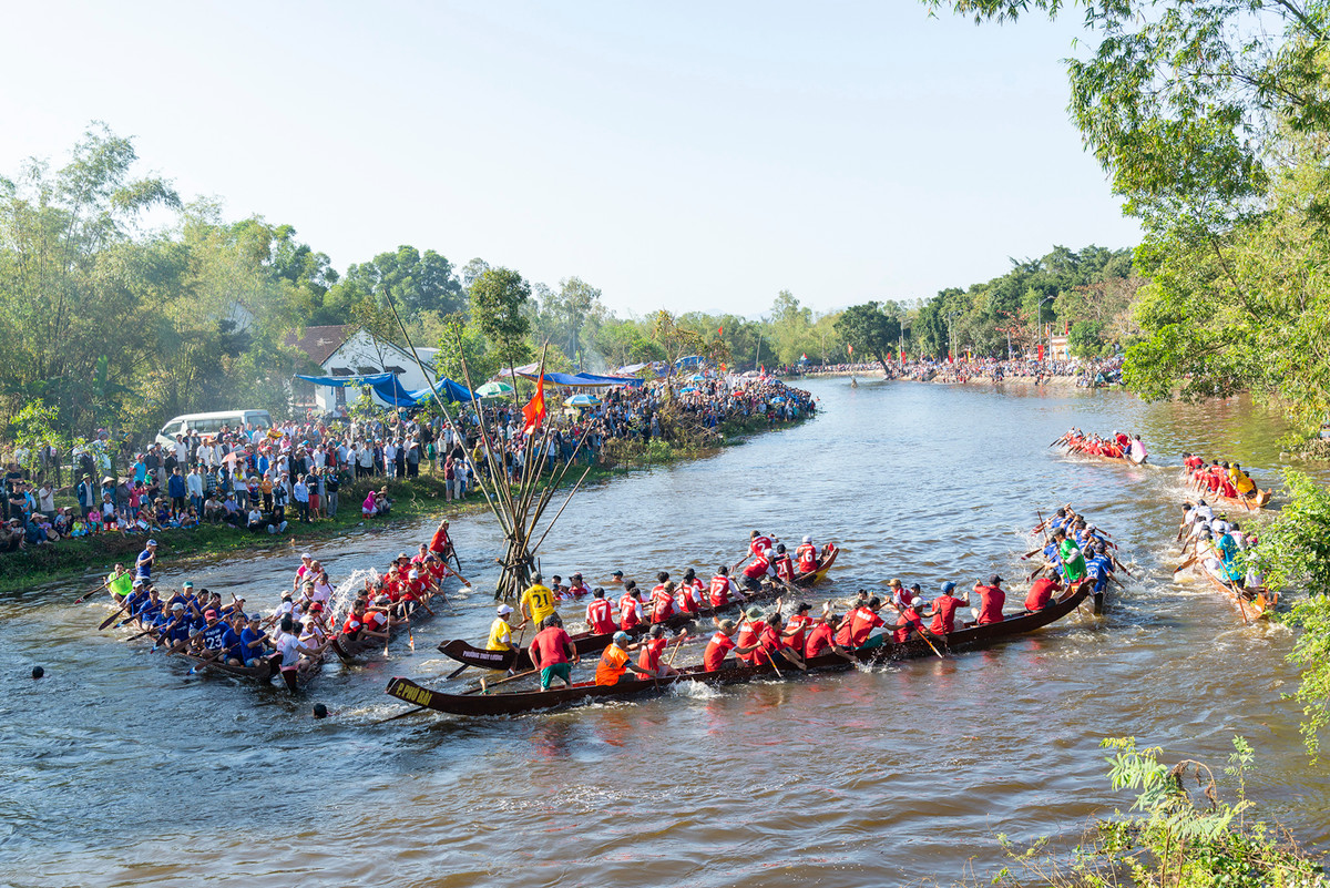 Thời tiết năm nay khá thuận lợi khi trời không mưa nên ngay từ sáng sớm dòng người kéo về ken đặc đôi bờ sông Vực.
