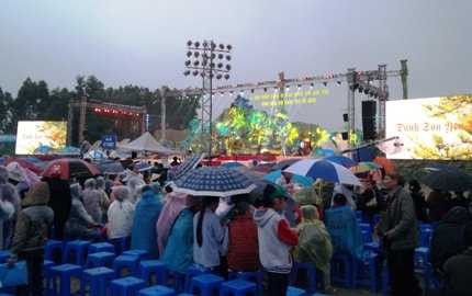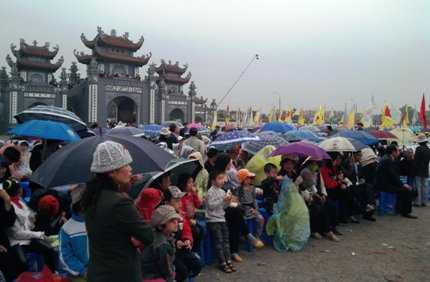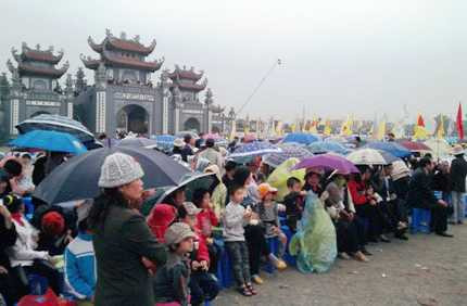 Chiều 18/2, mặc dù trời có mưa nhỏ nhưng hàng ngàn người đã tập trung về đây, nhiều người đã ngồi đợi hàng giờ giữa trời mưa để chờ lễ khai mạc.