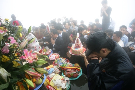 | Người dân dâng lễ tại chùa Đồng, khu danh thắng Yên Tử trước giờ khai hội. |