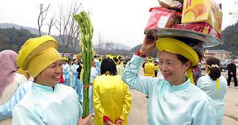 Các bản hội chuẩn bị mâm lễ vật vào lễ Phật ngày khai hội