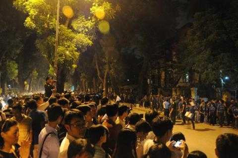| Đã hết giờ vào viếng Đại tướng theo thông báo của gia đình, dòng người vẫn ken đặc đường Hoàng Diệu. |
