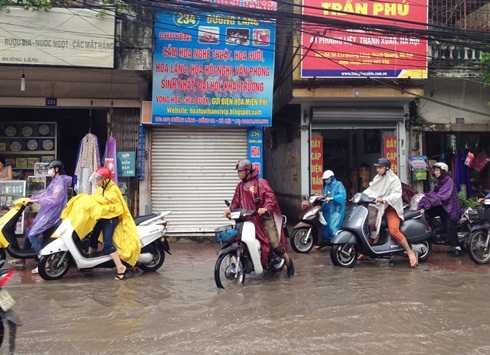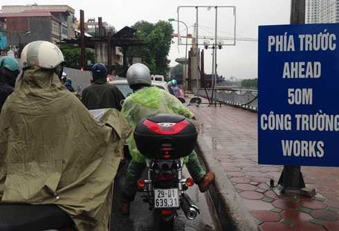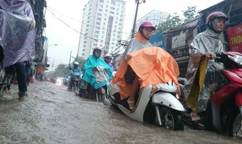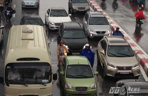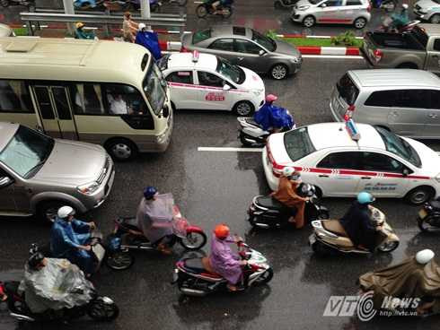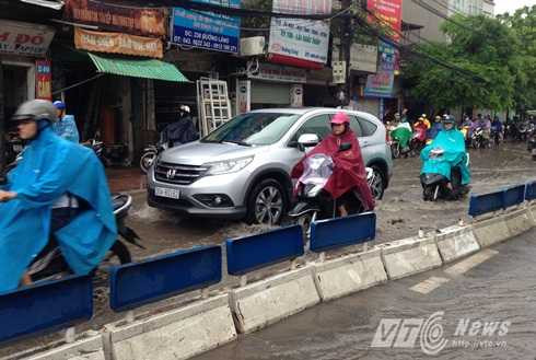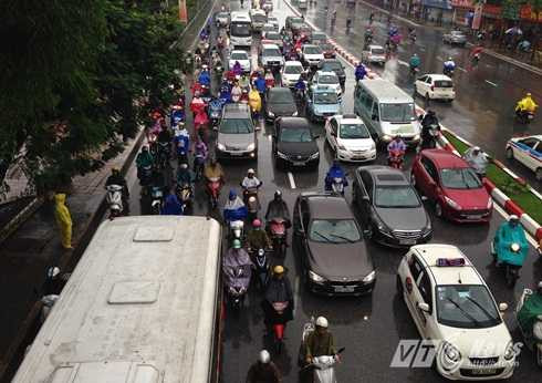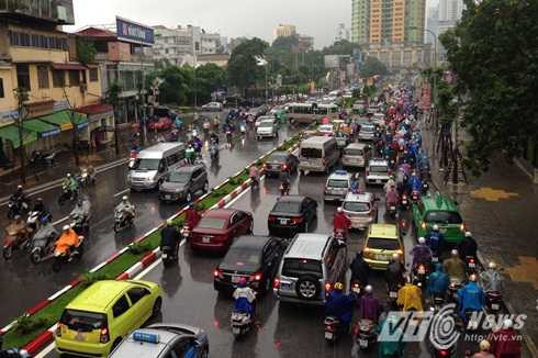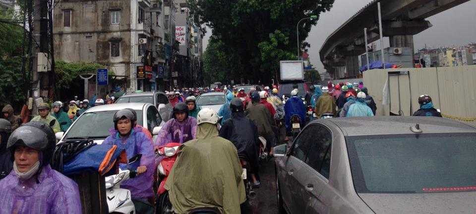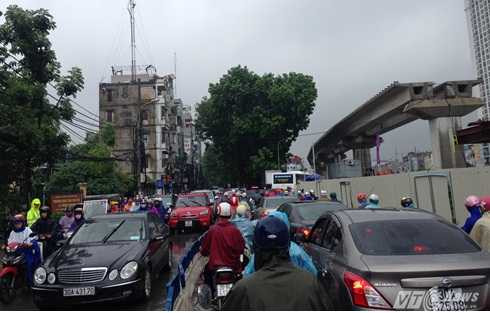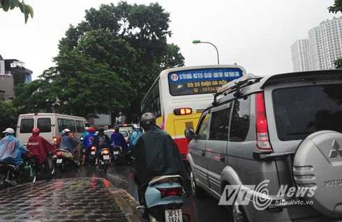 Nhiều tuyến đường như Đội Cấn, Nguyễn Chí Thanh (đoạn giao cắt Đê La Thành), Thái Hà, Láng (đoạn thi công đường sắt trên cao), Nguyễn Xiển, Nguyễn Trãi...rơi vào tình trạng ùn ứ giao thông. Các phương tiện vất vả nhích từng chút một dưới cơn mưa lớn.
