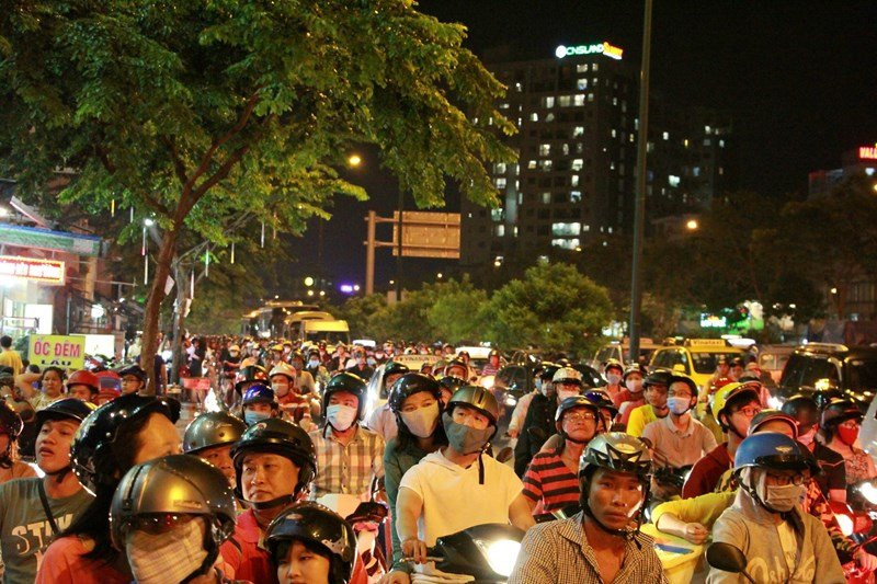 Mọi người tỏ ra mệt mỏi vì phải nhích từng chút một để di chuyển.