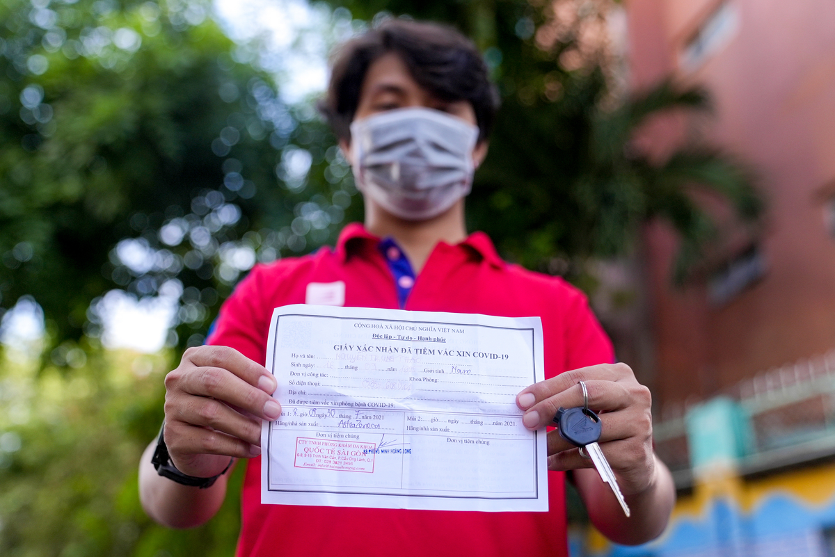 Giống như anh Vũ, tài xế Nguyễn Quang Vinh cũng có mặt trong danh sách tiêm đợt này. Làm người giao hàng để kiếm tiền nuôi gia đình, khi dịch bùng phát anh Vinh không chỉ gặp khó khăn vì bất tiện trong việc di chuyển mà còn luôn lo lắng bị nhiễm bệnh và lây cho gia đình.