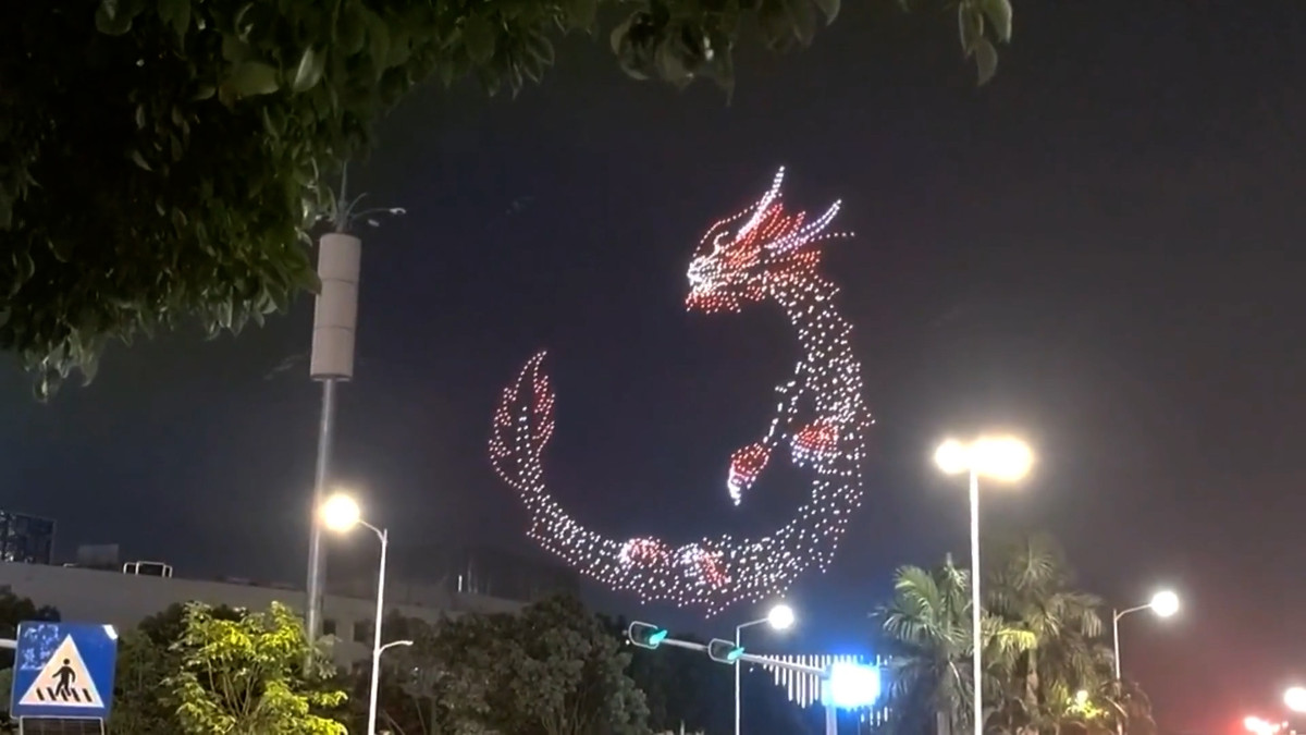 1.500 chiếc flycam được điều khiển phức tạp và phối hợp ấn tượng, đã tạo ra một "con rồng bay" lung linh trên bầu trời TP Thâm Quyến, Trung Quốc.