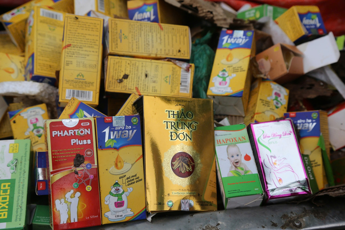 Hàng nghìn hộp thực phẩm chức năng được thu gom, chất đầy trên 13 xe thu gom rác.