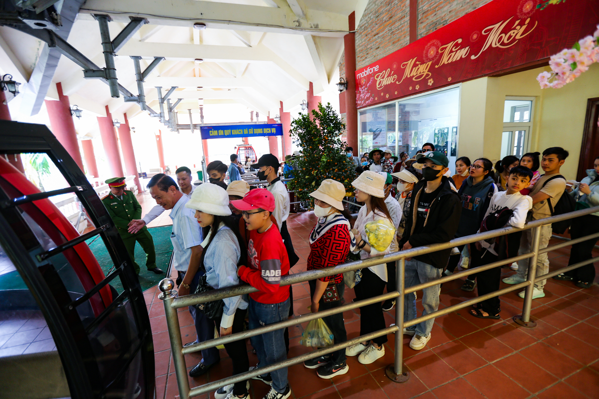 Dòng người “rồng rắn” tại sảnh chờ để được lên cáp treo.