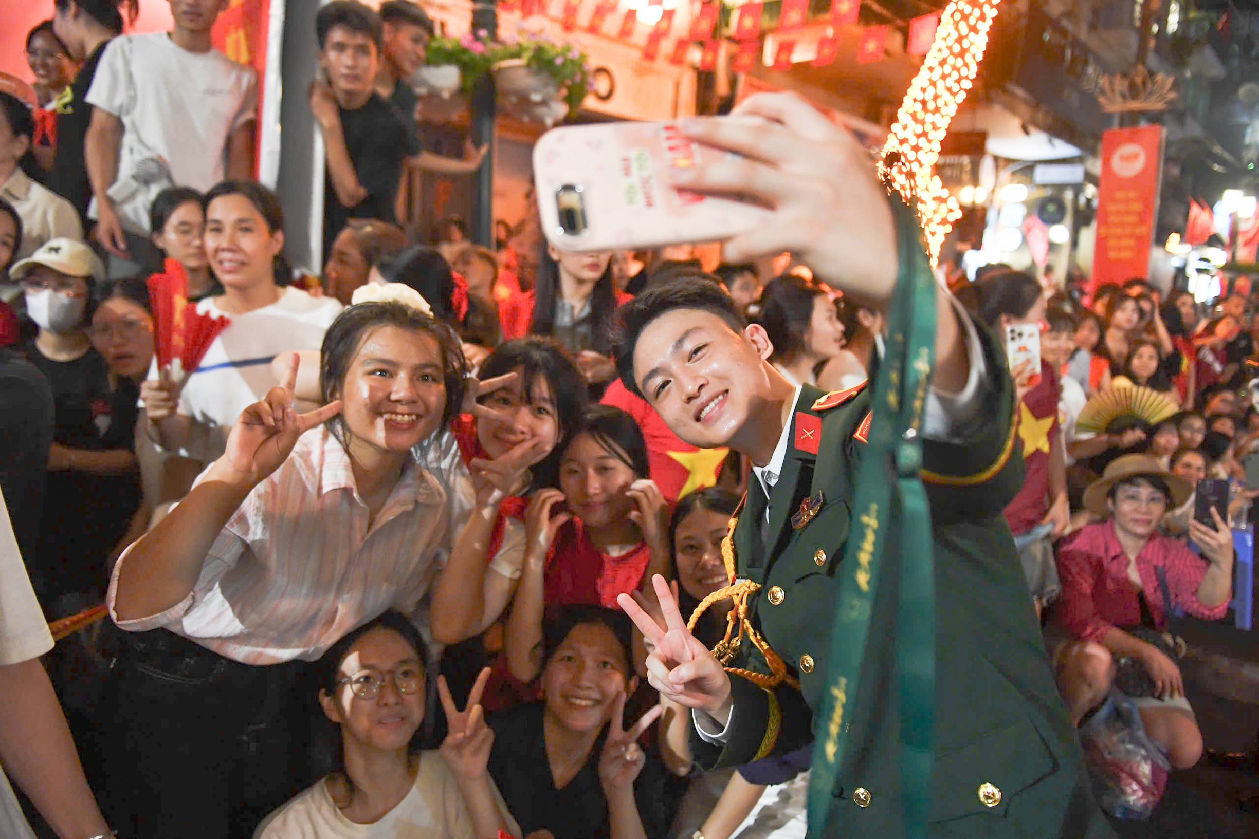 Những giai điệu quen thuộc như Đất nước trọn niềm vui, Nối vòng tay lớn, Như có Bác trong ngày đại thắng… vang lên, kéo người dân hòa giọng, biến cả góc phố thành dàn hợp xướng khổng lồ.