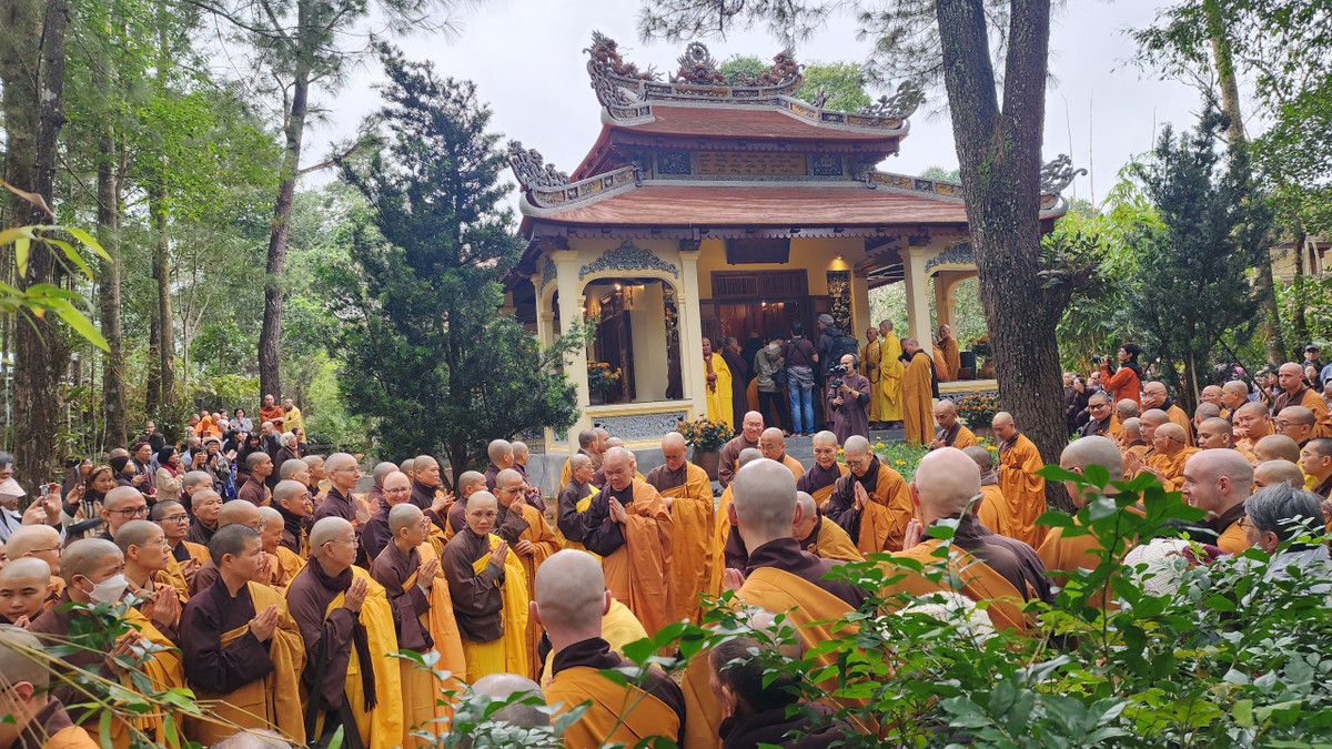 Ngày 29/1, hàng ngàn tăng ni Phật tử, người dân từ nhiều nơi tìm về Tổ đình Từ Hiếu, trên ngọn đồi Dương Xuân (phường Thủy Xuân, Huế) để tham dự nghi lễ rước xá lợi của thiền sư Thích Nhất Hạnh.