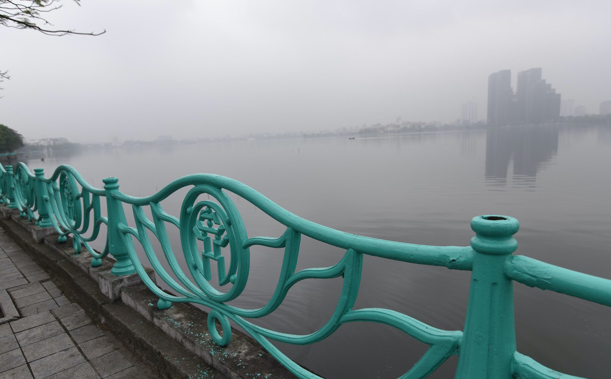 Nhiều đoạn lan can dọc Hồ Tây bị mất quả cầu gang. Ban QLDA đầu tư xây dựng quận Tây Hồ đang sơn sửa, thay thế… nhằm tránh tình trạng hoen gỉ lan can.