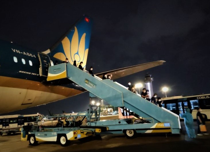 Trước diễn biến phức tạp của dịch bệnh và tần suất chuyến bay bị hạn chế, các lực lượng chống dịch và hãng hàng không quốc gia phải phối hợp hết sức khẩn trương để kịp thời đến vùng dịch. Ba chuyến bay Vietnam Airlines cất cánh trong tối Chủ nhật 22/8, ngay khi các sinh viên, giảng viên sẵn sàng lên đường.