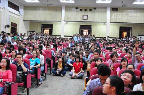 | Hội trường ĐH Kinh tế Quốc dân không còn một chỗ ngồi |