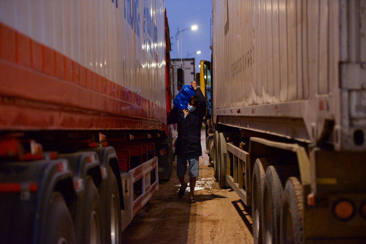 Cảnh sinh hoạt tạm bợ của nhiều tài xế đang mắc kẹt ở Lạng Sơn.