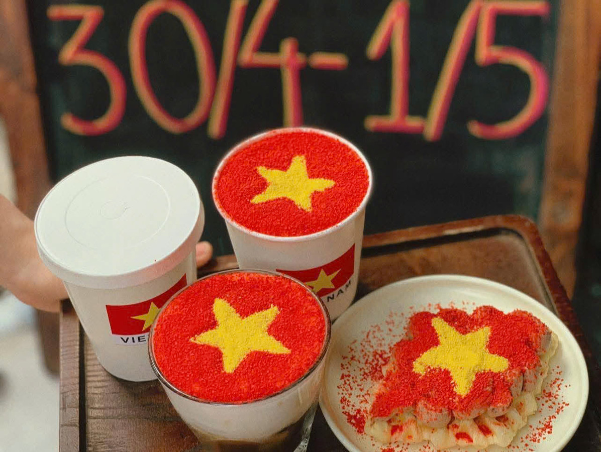 Trà sữa và cà phê muối là hai món có thêm lớp trang trí cờ đỏ sao vàng trong dịp lễ năm nay.